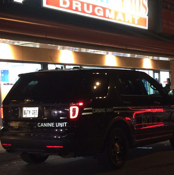 The canine unit was on scene in the Creditview Rd. and Eglinton Ave. W. area following a robbery at a Rexall Pharma Plus store around 10 p.m. Wednesday.