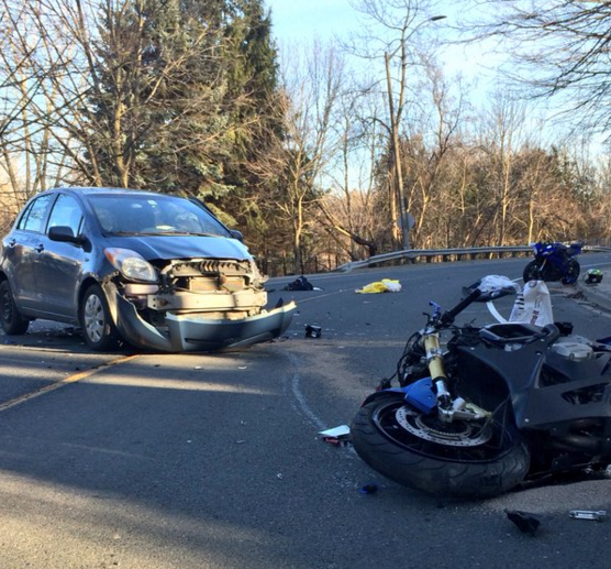 Emergency crews responded to a call around 3:30 p.m. at Mississauga Rd. and Dundas St., where a motorcycle collided with a car.