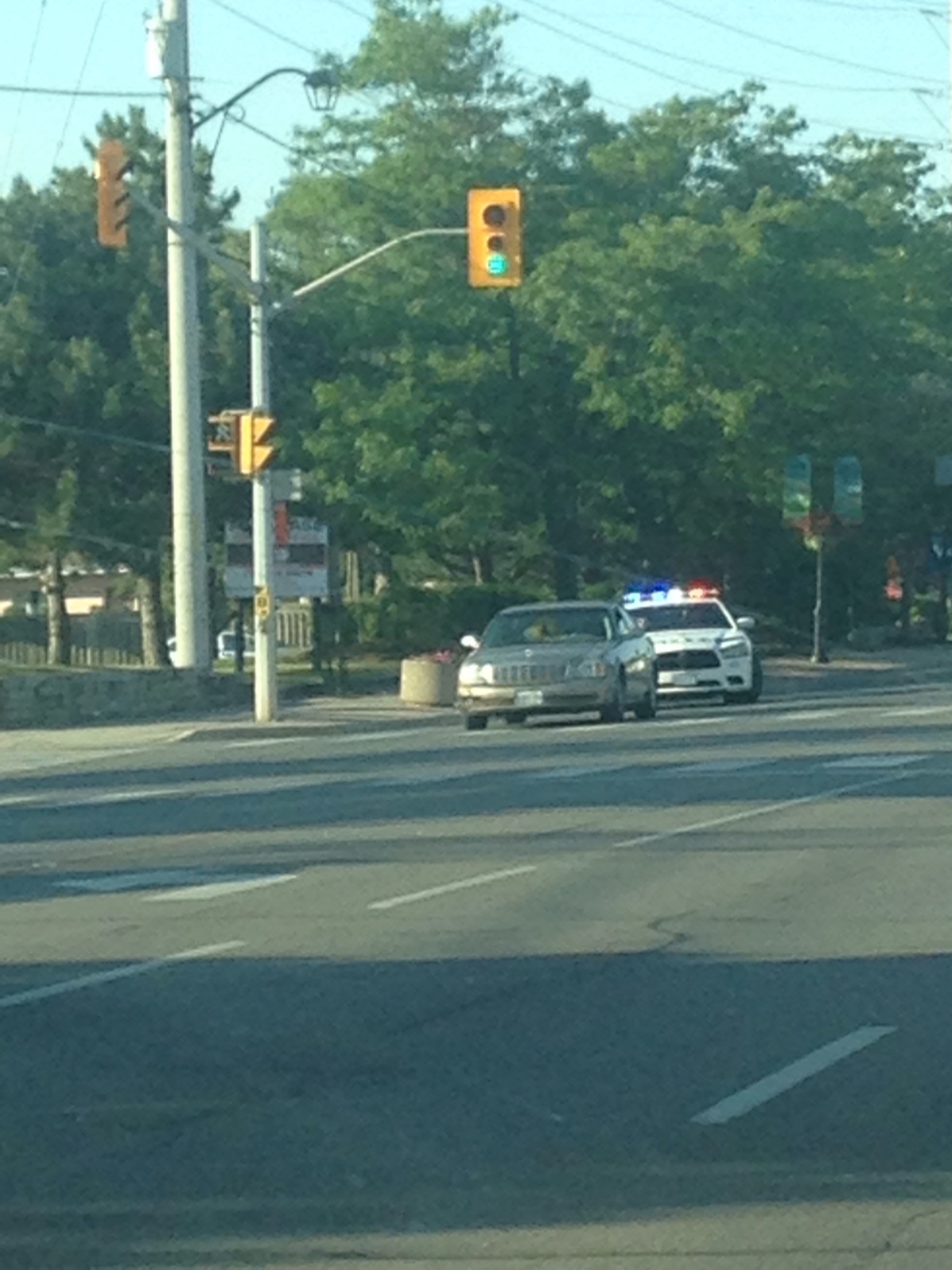 “There were three police cars that circled the car to stop it,” said a QEW South Post reader who witnessed the takedown.